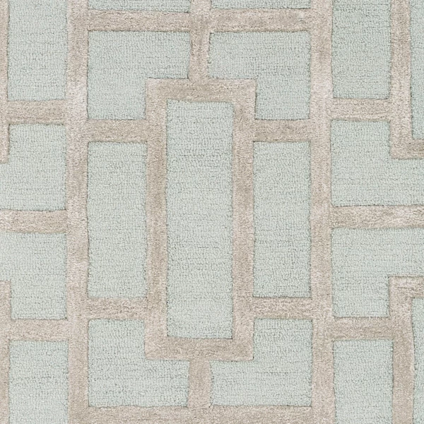 Hand-tufted rugs combine wool and viscose to create a durable pile. Gold chain link design pops on neutral grey for an almost 3-dimensional appearance.