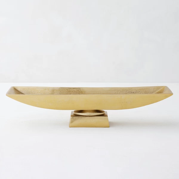 Handsomely hand-cast from aluminum and finished with gold nickel plating, our Collins Bowl stands out as an exceptional decorative piece. For added dimension and visually interest, our Collins Bowl sits atop a rectangular pedestal base. Designed to celebrate refinement and simplicity, fill the bowl with ornamental objects or simply enjoy it for its luminous beauty.