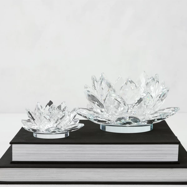 Clearly elegant in both day and evening, these crystal lotus glisten softly in candle light.