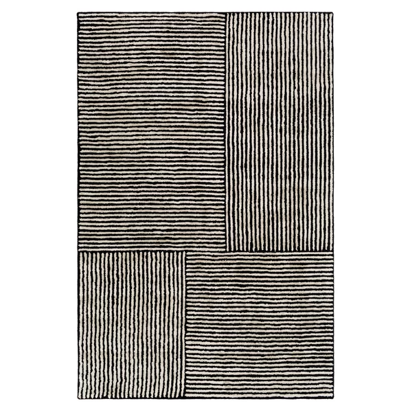 Remarkably soft underfoot, our Emerson rug features classic black stripes in a patchwork design, creating a medley of rectangles for an eye-catching touch to any floor.