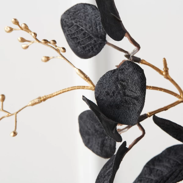 Finished in black and gold, these stunning faux-eucalyptus stems make a festive addition to your holiday decor.