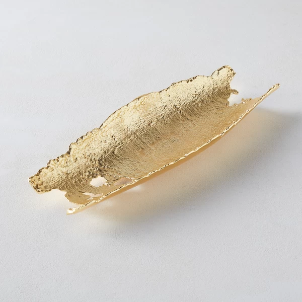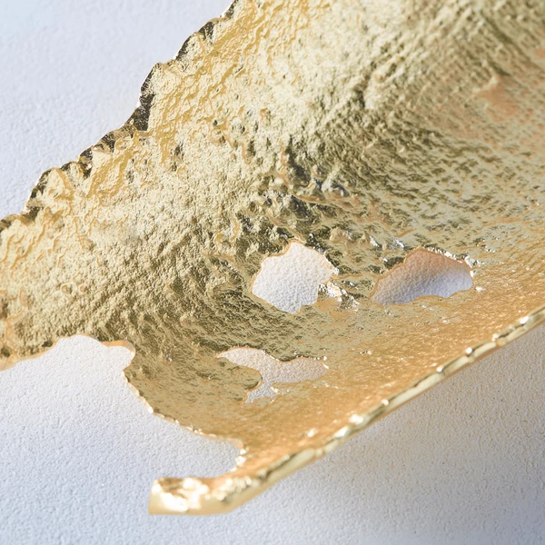 With its freeform shape and wonderful texture, this decorative plate brings organic allure to its surroundings, while a gold finish adds a chic, modern touch.