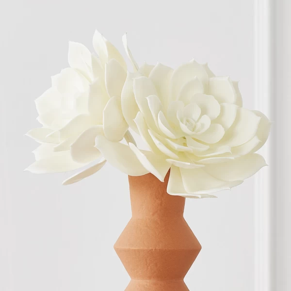 With the current passion for succulents, create an everlasting arrangement of these Echeveria. Arrange in a low bowl, vase, or terrarium. Shown with our Gabriella Vase and sold separately.