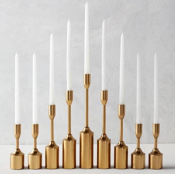 Designed with clean, simple lines and a gleaming gold finish, our Galo taper holders add modern elegance and height to any tabletop or mantel. Taper candles not included.