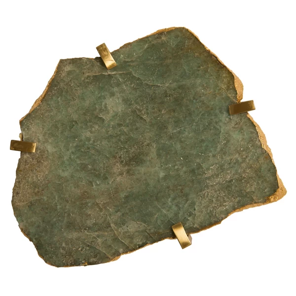 Prong-set in brass, this stunning gem wall tile is made of natural stone with unique veining along its surface, making it a one-of-a-kind piece for your wall.