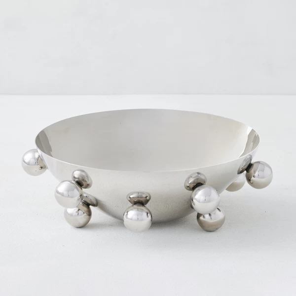 Sometimes you just need something unique. The stainless steel Gramercy Bowl features multiple polished knobs as whimsical pedestals.