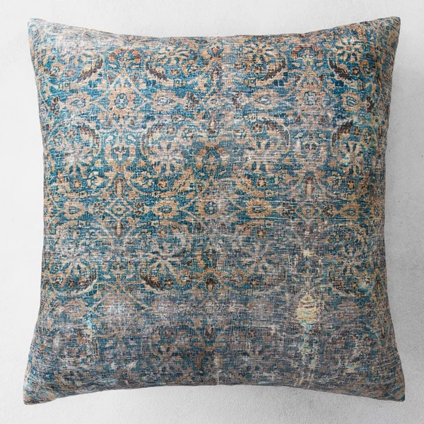 Laid-back luxury is the name of the game and the Idyllic Floor Pillow has come to play. The Idyllic collection plays with beautiful earthy tones of blues and gold with a transitional pattern that is made to be admired.