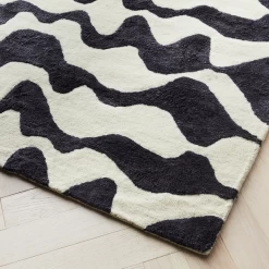 Featuring a leopard-spot pattern in black and white, this Moroccan shag rug is ideal for adding bold pattern and soft style to any space.