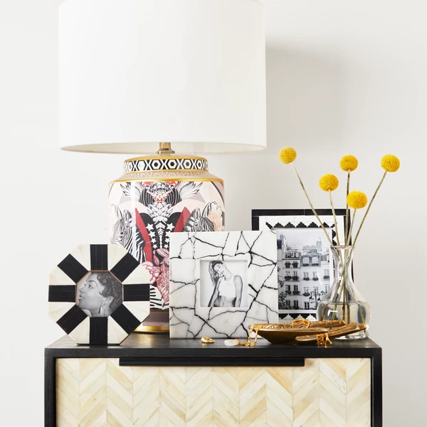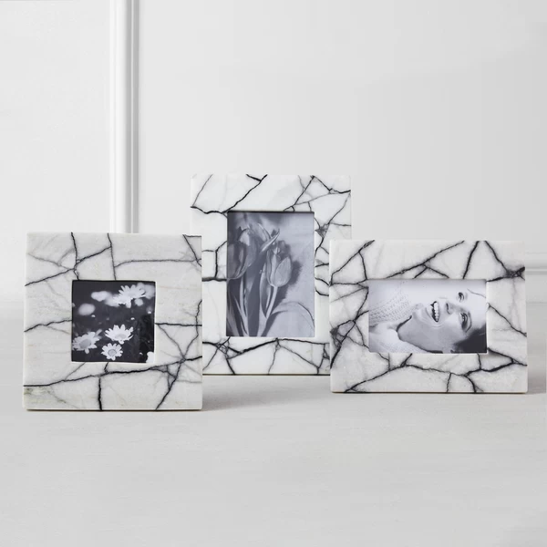 Create a photo display with the Maze marble frame. Available in three sizes, these substantial pieces look great with a variety of decor styles.