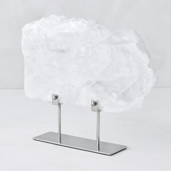 Named after Selene, the Greek goddess of the moon, selenite is a crystalline mineral embraced for its luminous appearance. It’s also coveted for the belief in its healing properties and cleansing energy. Mounted on a stainless steel stand, our radiant Selenite Slab is a stand alone piece that will start conversations.