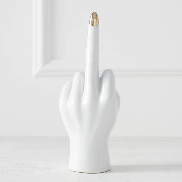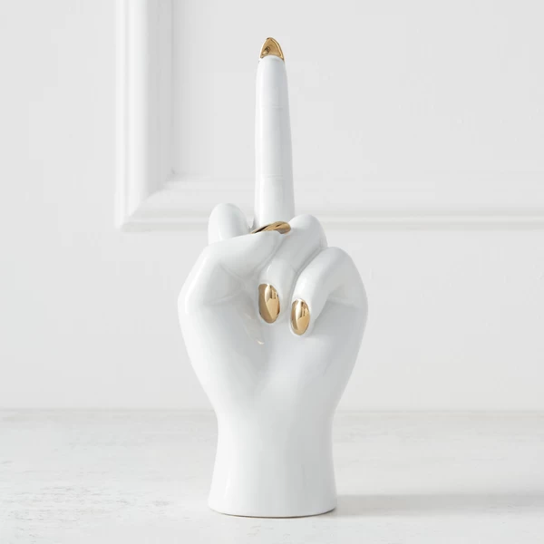 Crafted of ceramic with a glossy white and gold finish, this cheeky hand sculpture makes a stylish option for displaying jewelry (though we love it displayed on its own as well).