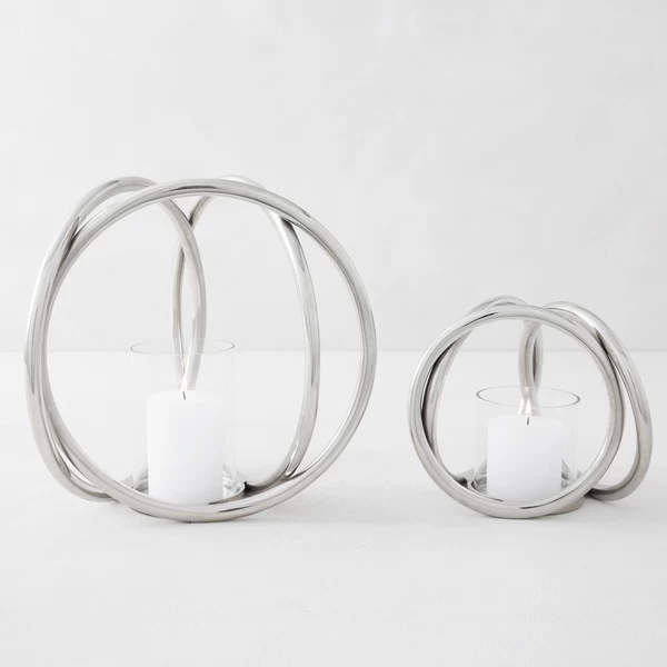Clear glass and polished aluminum rings create eye-catching dimension for your holiday arrangements.